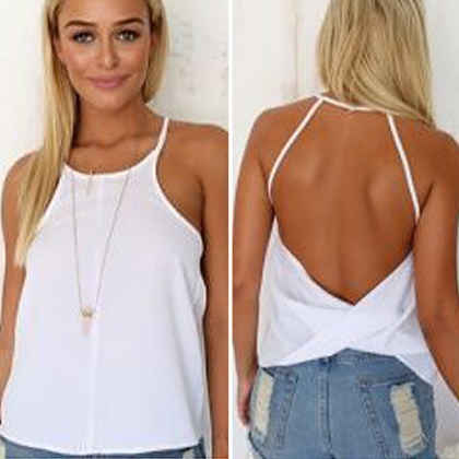 Sexy Backless Solid Color Loose Cami Tops