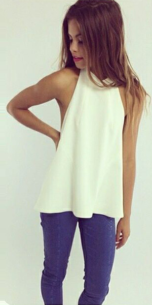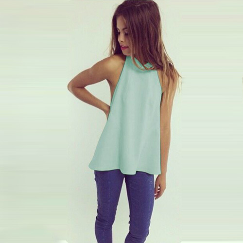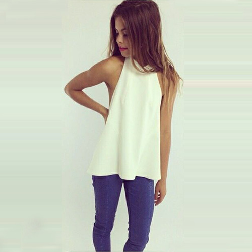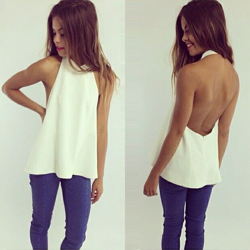 Show off your sexy and stylish style via this halter top. Solid color style,backless design adds