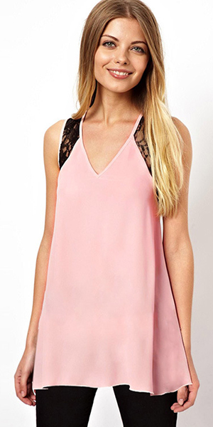 adds some feminie sense and sweet feeling. Loose style,with high-low hemline design,fashion and chic.