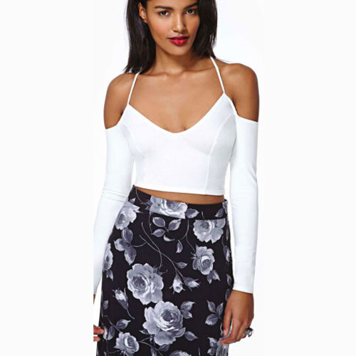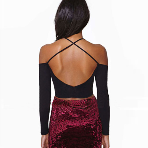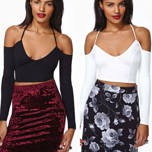 Sexy Deep V-neck Backless Off-shoulder Long Sleeve Halter Tops
