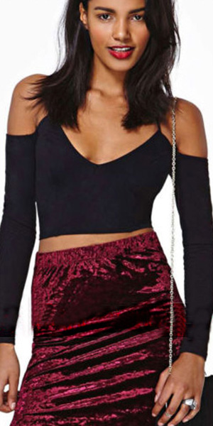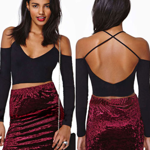 with deep v-neck,backless and off-shoulder design,sexy and seductive. Long sleeve and