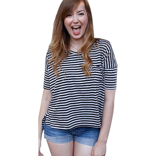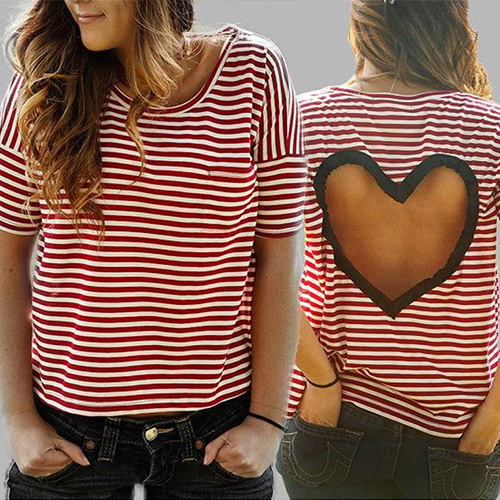 Stay stylish and keep comfy all day in this short sleeve t-shirt. Striped style,backside with