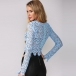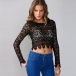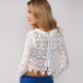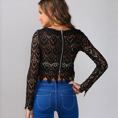 Sexy Hollow Out Lace Long Sleeve Round Neck T-shirt
