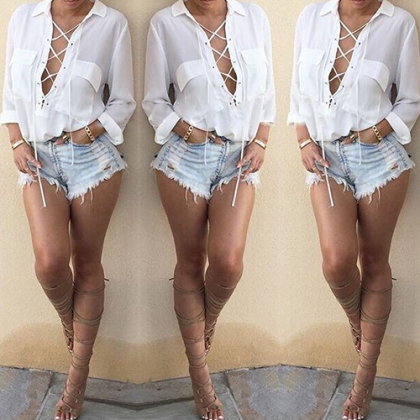The most eye-catching design? Of course its lace-up deep v-neck design,which makes it look so sexy