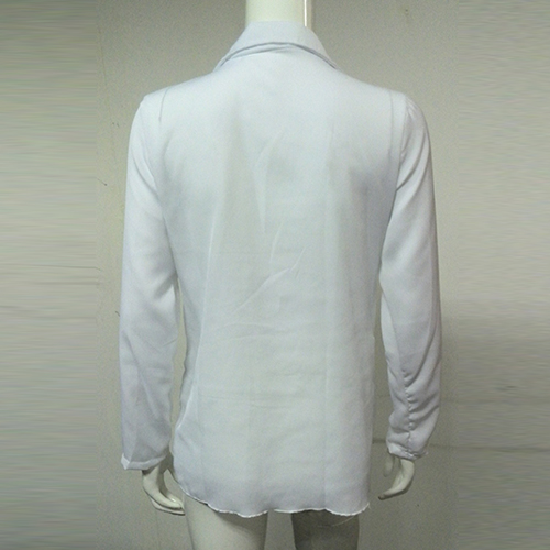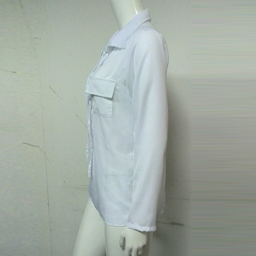 Slip into this breezy chiffon shirt in hot days. Solid color style,with long sleeve and POLO collar design.
