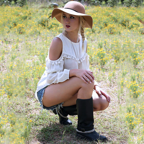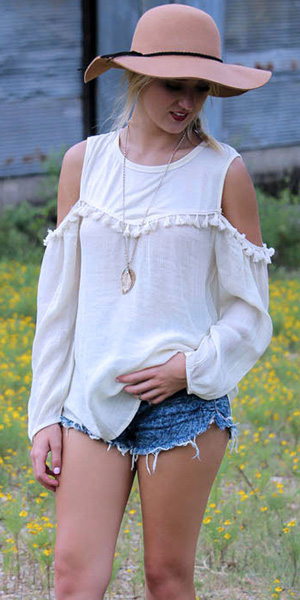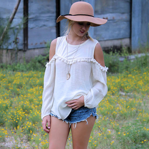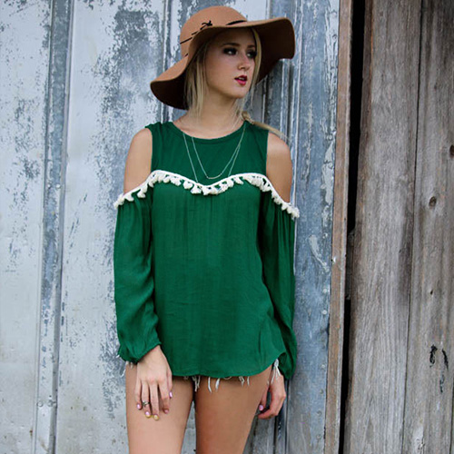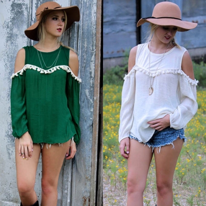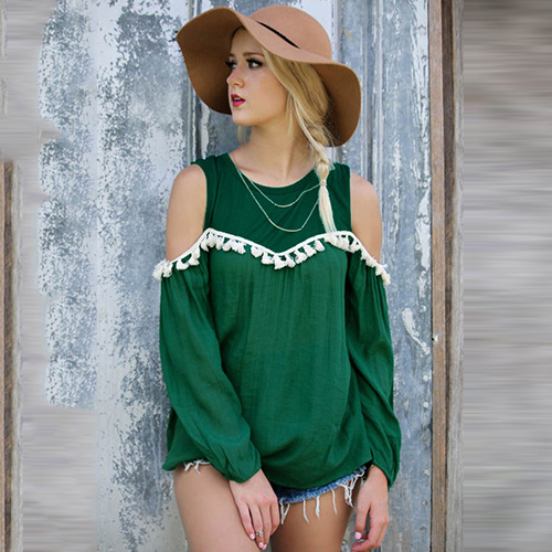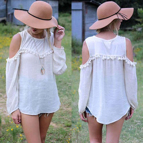with long sleeve and round neck design. Plus,its off-shoulder design adds some sexy and seductive
