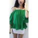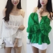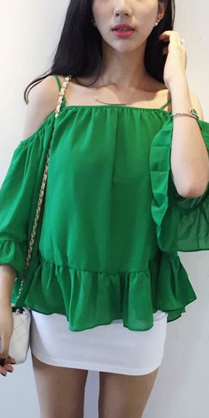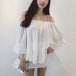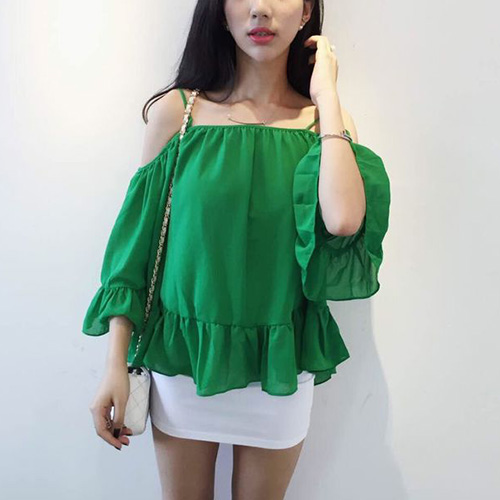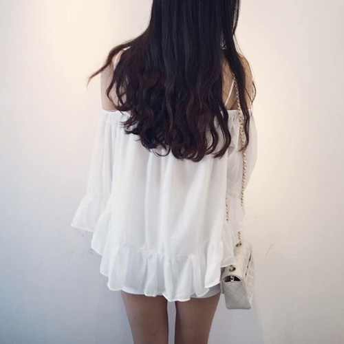 Sexy Off-shoulder Trumpet-sleeve Flouncing Hem Chiffon Tops