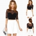 This t-shirt features short-style style,with see-through gauze spliced design,sexy and filmy beauty.