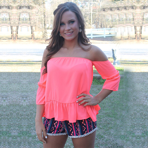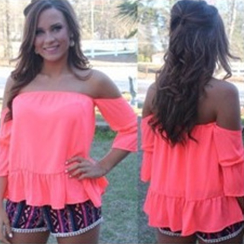 Show off your seductive collarbone and fair skin by way of this tops. It features solid color style,