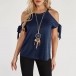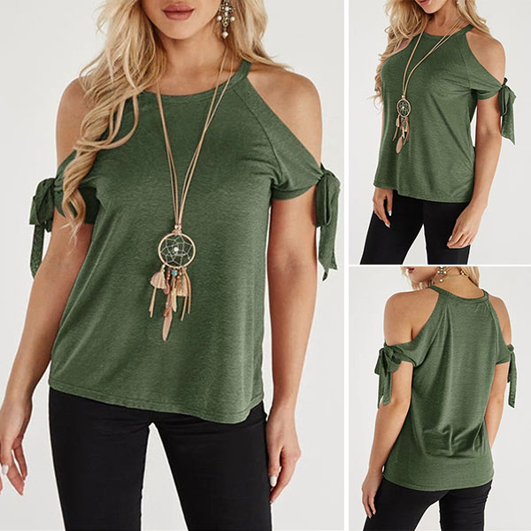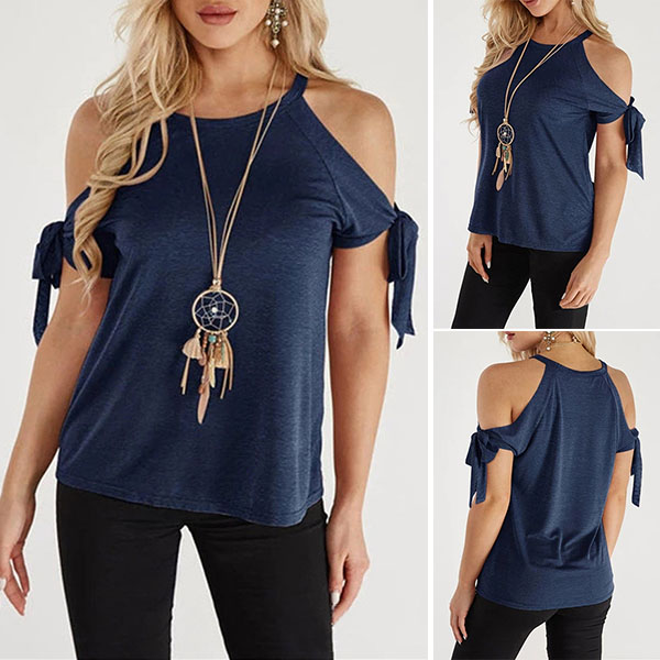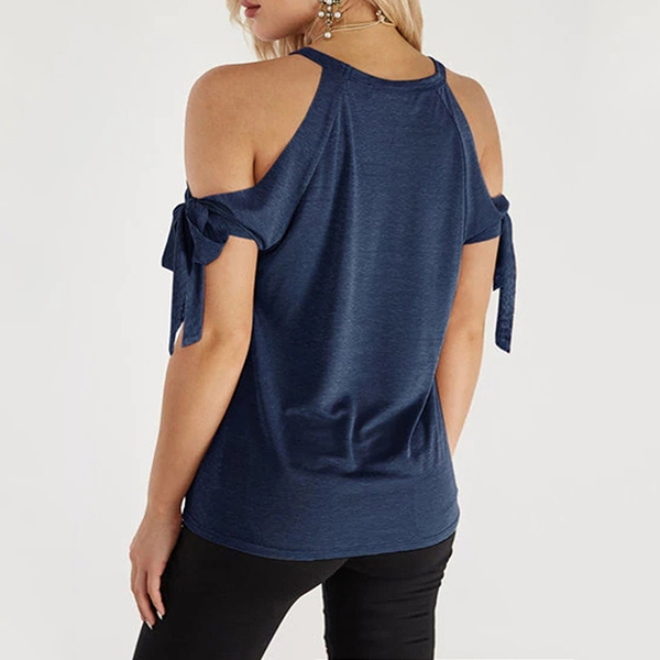 Sexy Solid Color Off-the-shoulder Bow-knot Short Sleeve T-shirt