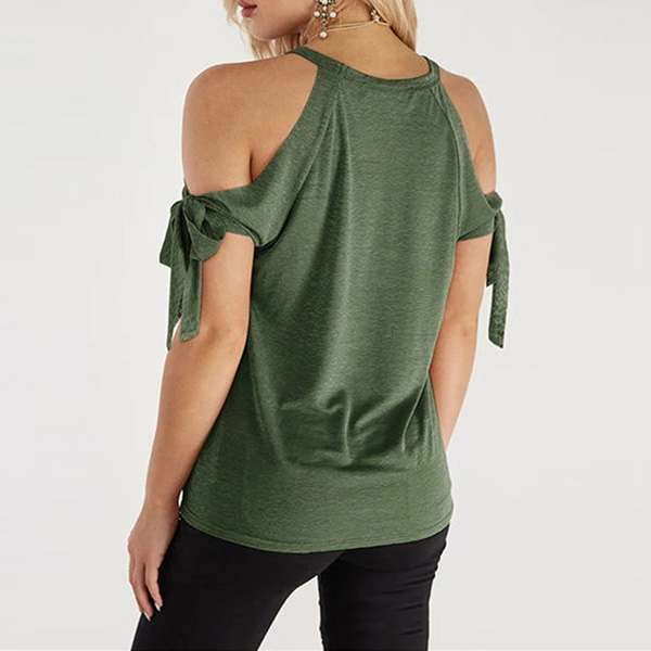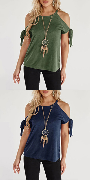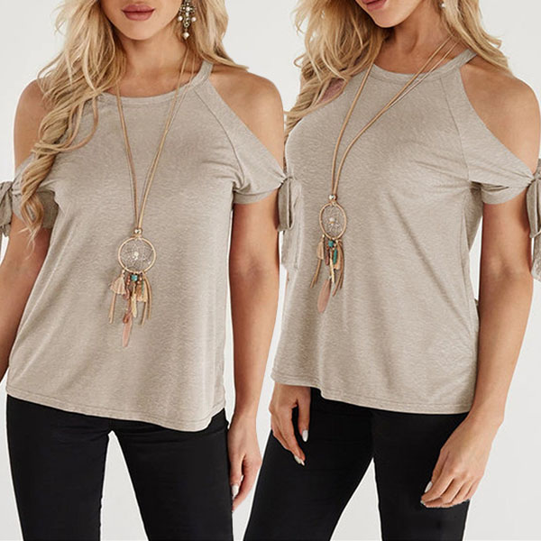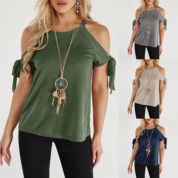 off-the-shoulder short sleeve T-shirt. The simple cuts let you spend a