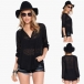 You will absolutely be attracted by this tops. It features a mysterious and flattering black color. Front V-neck with buttons for decoration,long sleeve and see-through wave pattern design,sexy and filmy beauty. Add it to your wardrobe!