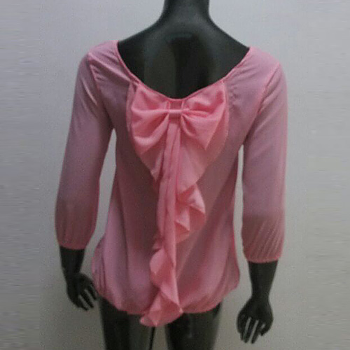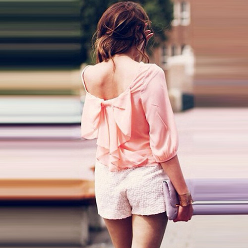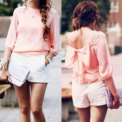 This chiffon tops features pink color,with bowknot backless design,sweet and sexy.