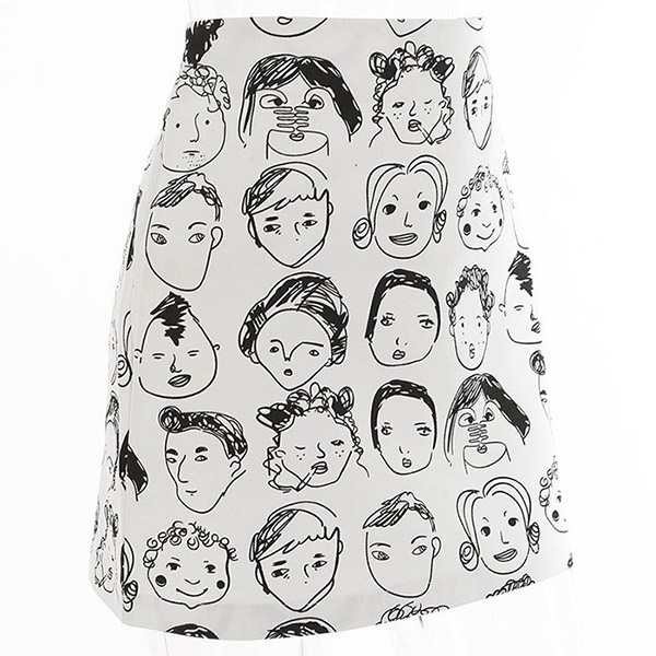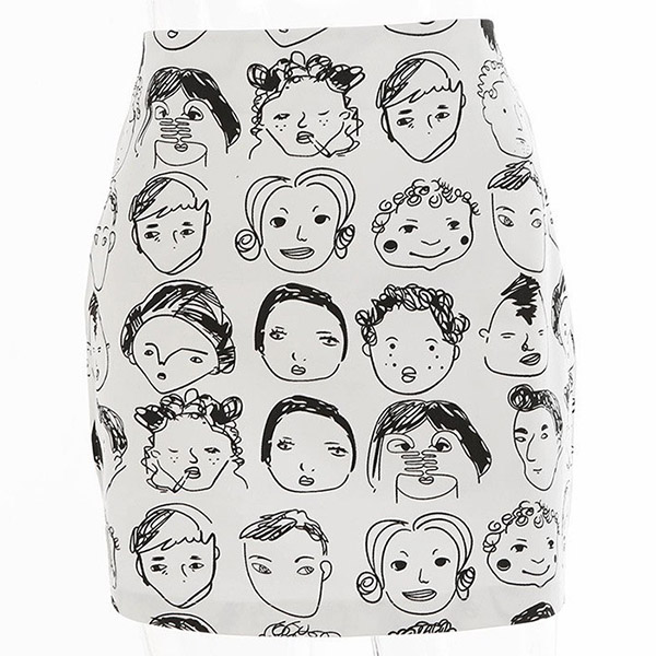 This skirt is designed with cartoon head pattern,which can help you catch more eyes. The high waist and fit silhouette design can help showcase your slender and charming legs. No matter what kind of tops you pair with,you can look sassy and flirty enough!