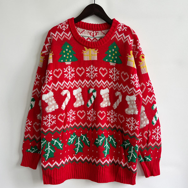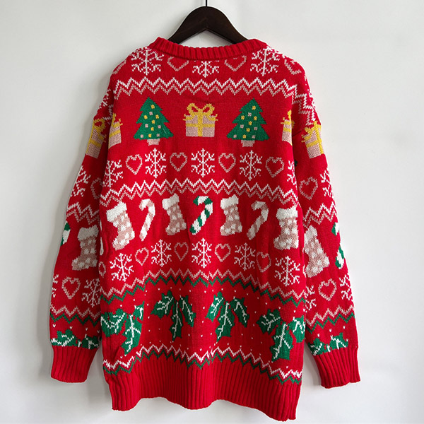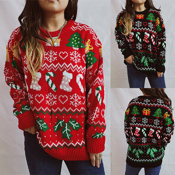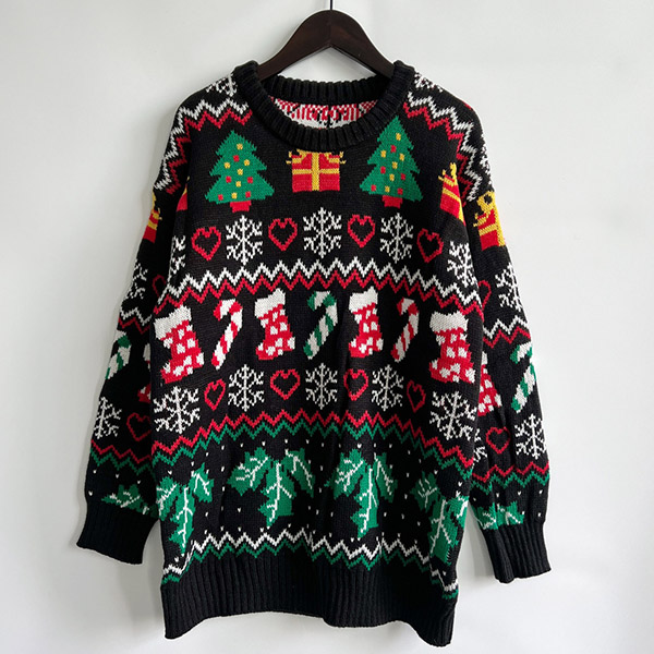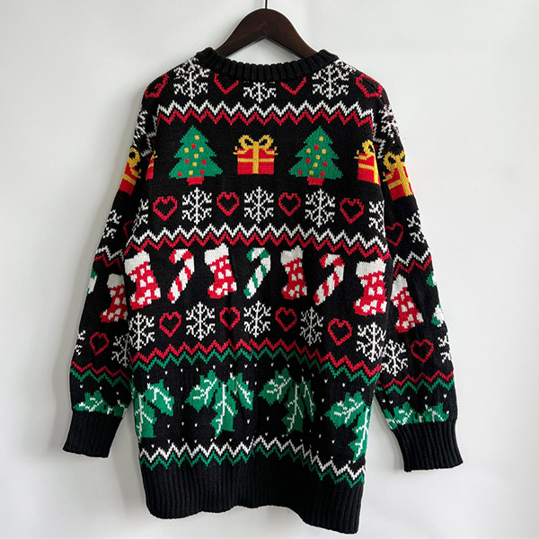 Celebrate the holiday season in style with this Chic Christmas Sweater. Designed with a festive and playful Christmas tree, socks pattern, this sweater is perfect for adding a touch of cheer to your winter wardrobe.