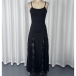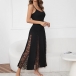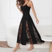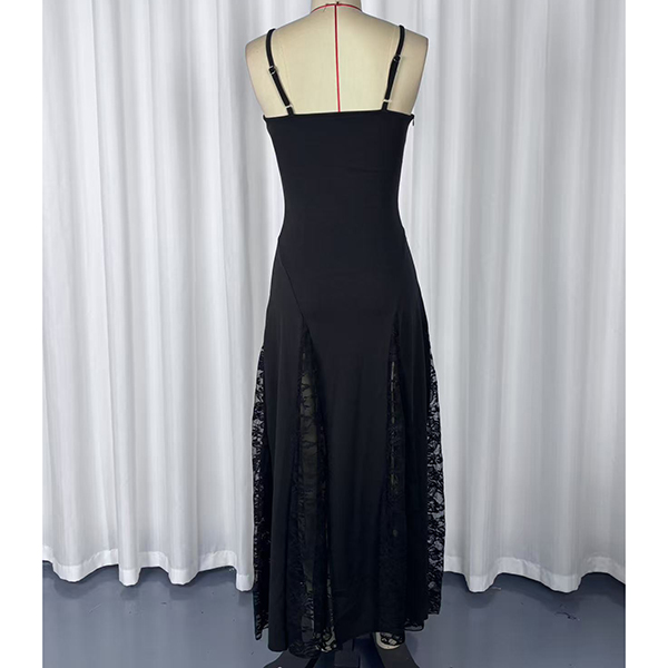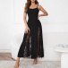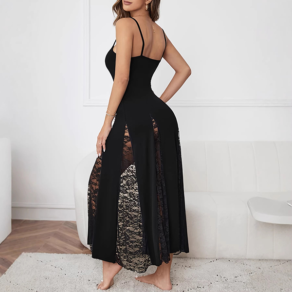 Chic Elegant Strappy Maxi Dress Sexy Sheer Lace Panel Waist Defining Evening Gown