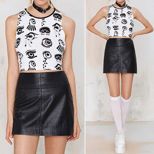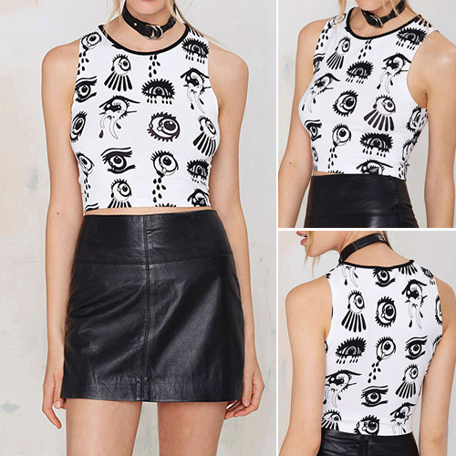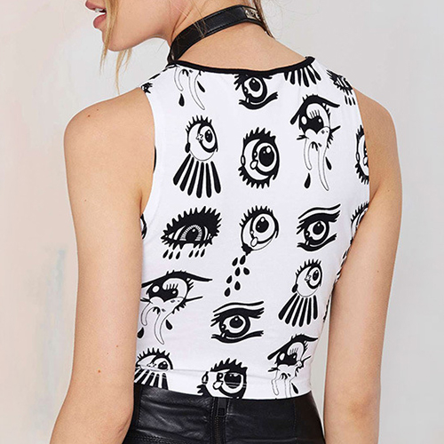 to wear in summer. With eye-shaped prints on it, this crop top looks more stylish and exquisite.