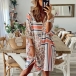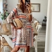 Chic Style 3/4 Sleeve POLO Collar Geometric Pattern Printed Dress
