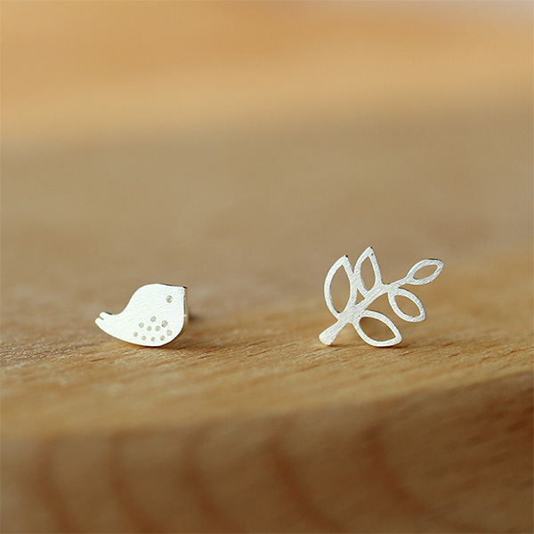 Add a dash of fresh and chic vibes to your overall look with these stud earrings. Bird and leaf shaped design make it look so unique. Asymmetric design is the highlight. Embellish your ears with these pieces.