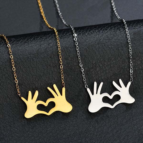 This necklace comes with two classic colors:gold color and silver color. The both-hands pendant design