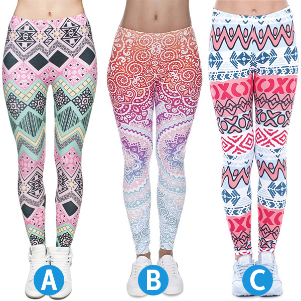 For your sports time like Yoga or jogging or running,this leggings would be your wise choice. The colorful printed details make this piece look so stylish and attractive. Crafted from soft,breathable and stretch fabric,this piece also can give you an utmost comfort. It is also a good chance to showcase your slender legs.