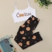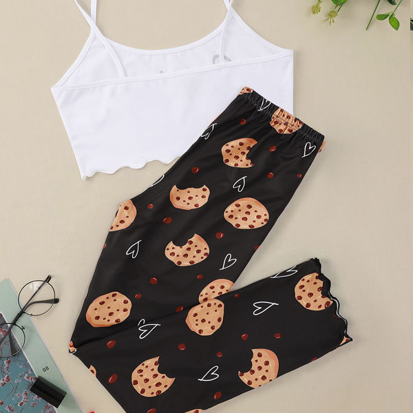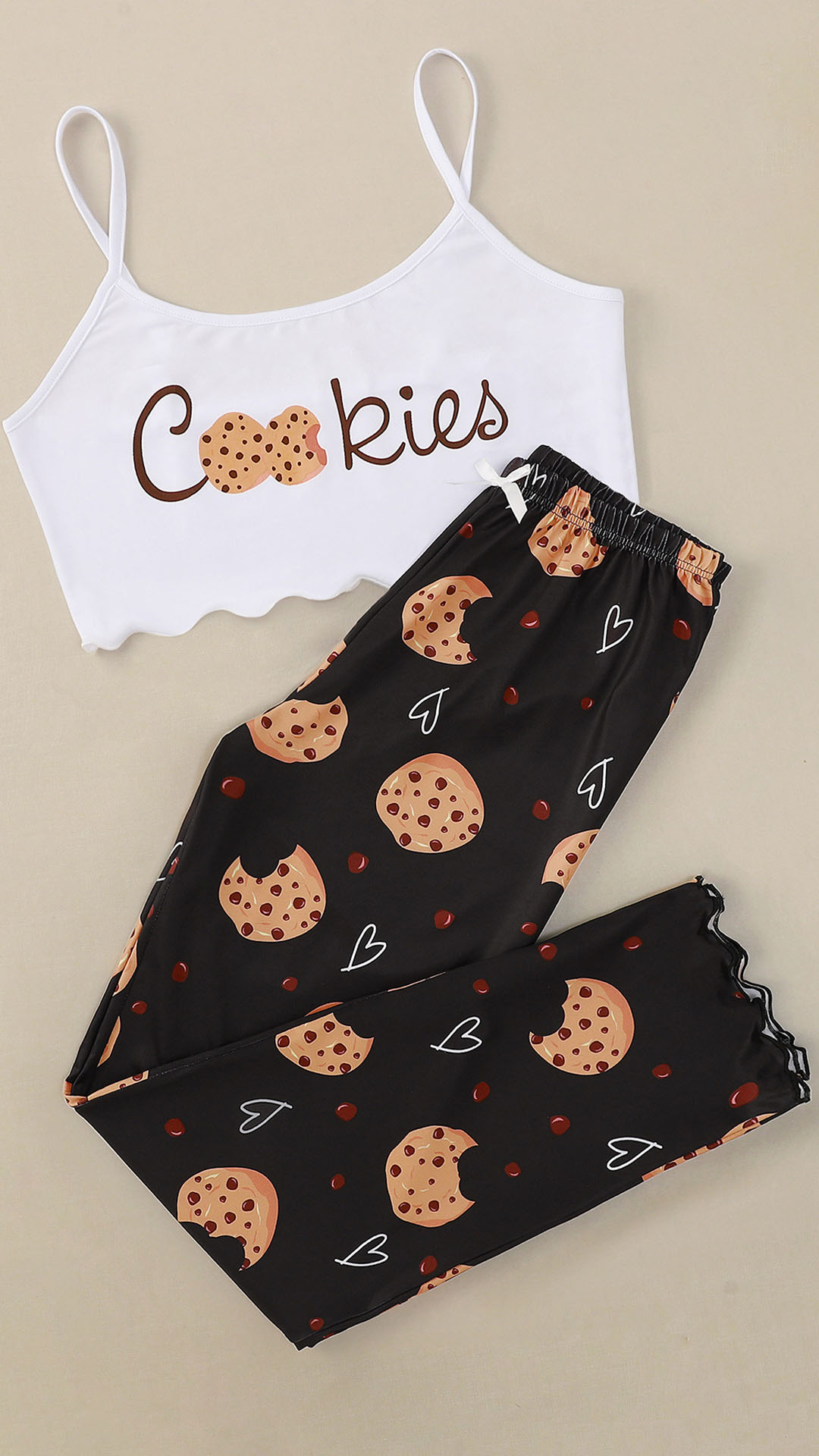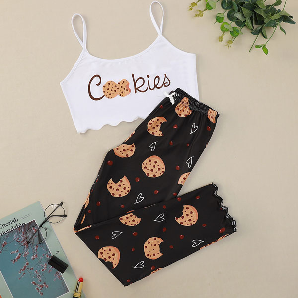 Chic Style Cookies Printed Sling Crop Top + Pants Two-piece Set