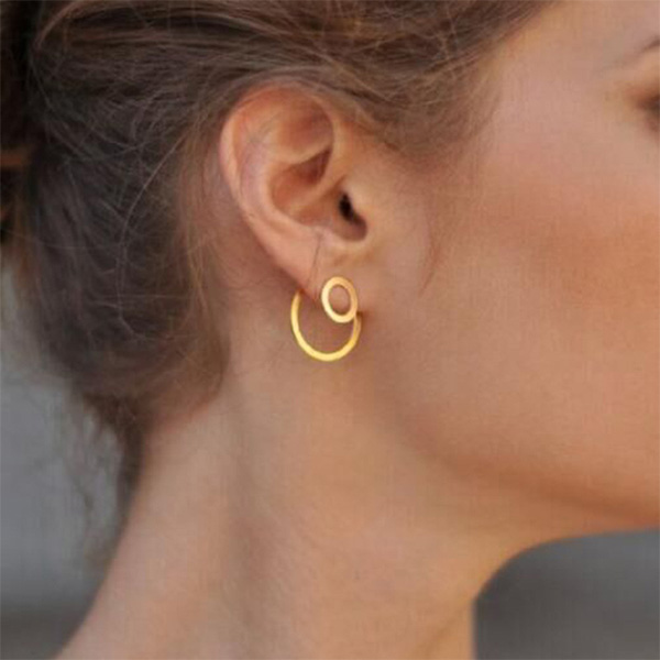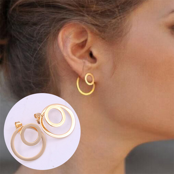 Chic Style Gold-tone Circle Shaped Stud Earrings