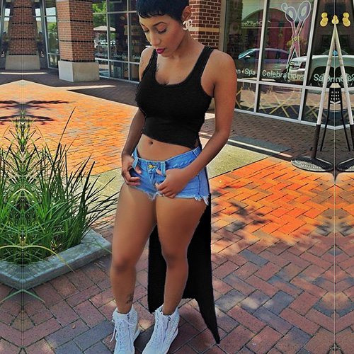 tight pants or denim shorts,still looks so stylish and chic.