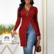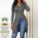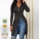 Wanna try a different style piece? Then you can make your eyes focused on this t-shirt! The zipper v-neck,high slit hem and button details make this piece look so distinctive. Crafted from soft and breathable fabric,this long sleeve t-shirt is perfect fit for your autumn days.