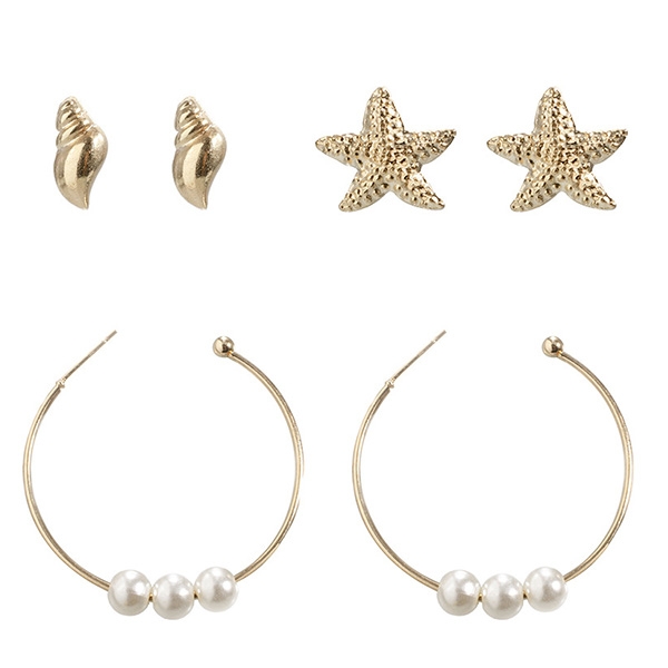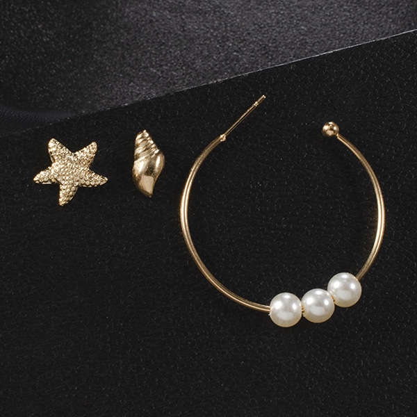Chic Style Imitation Pearl Inlaid Starfish Conch Shaped Stud Earring Set 3 pcs/Set