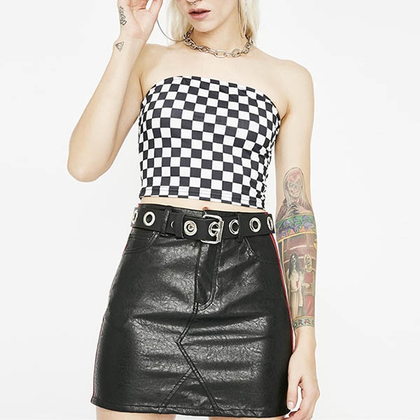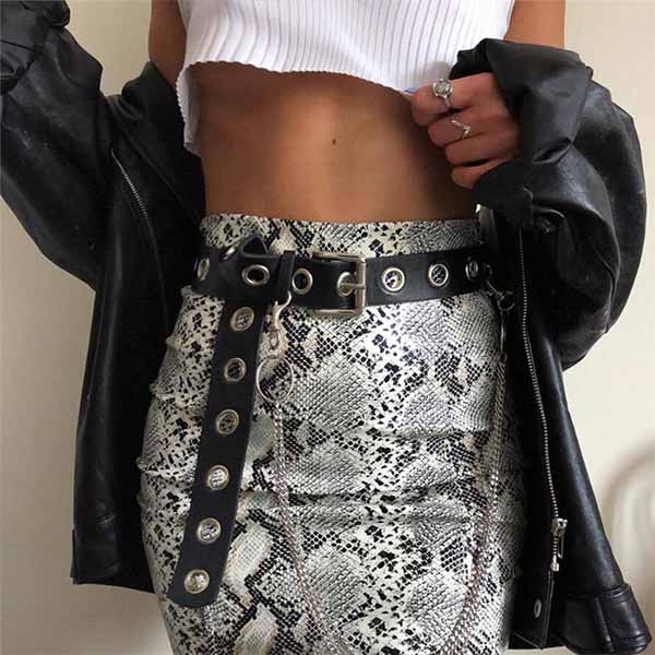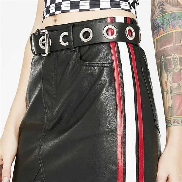 This PU leather waistband is designed with keyholes details,chic yet distinctive. Your overall look can