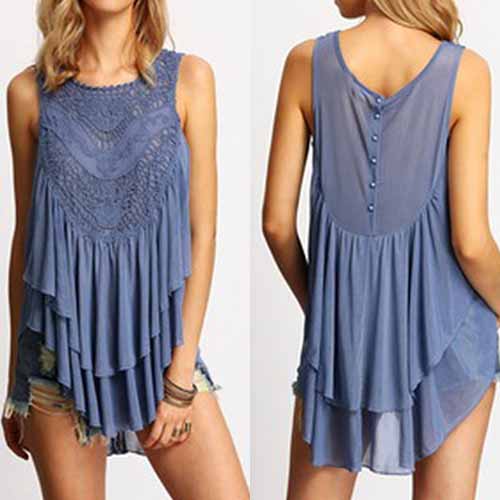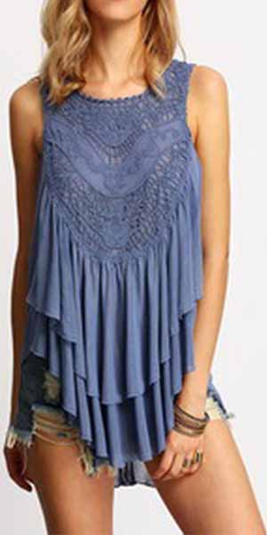 Style up your chic wear with this tops. Embossed with romantic lace spliced,sleeveless,round neck