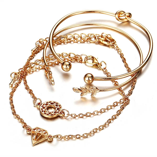 Chic Style Leaf Knotted Alloy Bracelet Set 4 pcs/Set