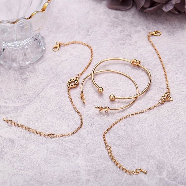This bracelet set consists of 4 pieces different bracelets,coming with a classic yet stylish gold tone,