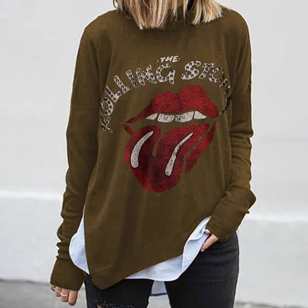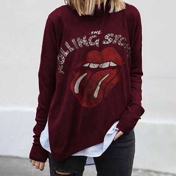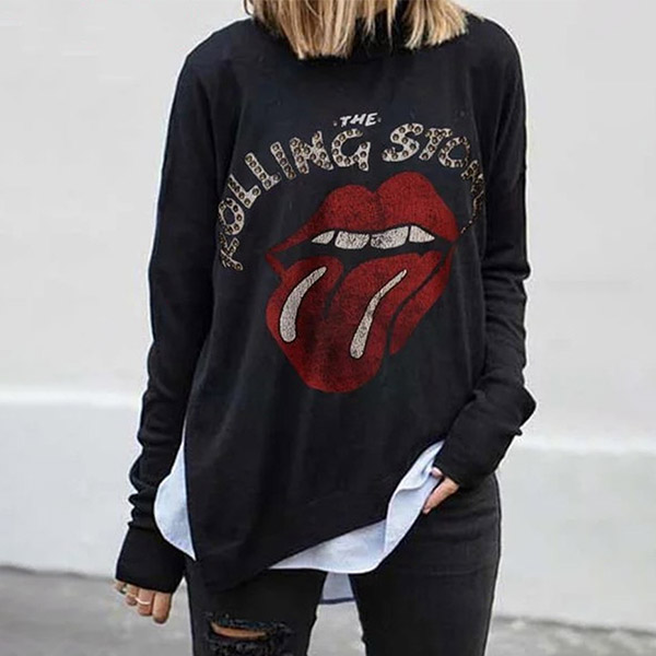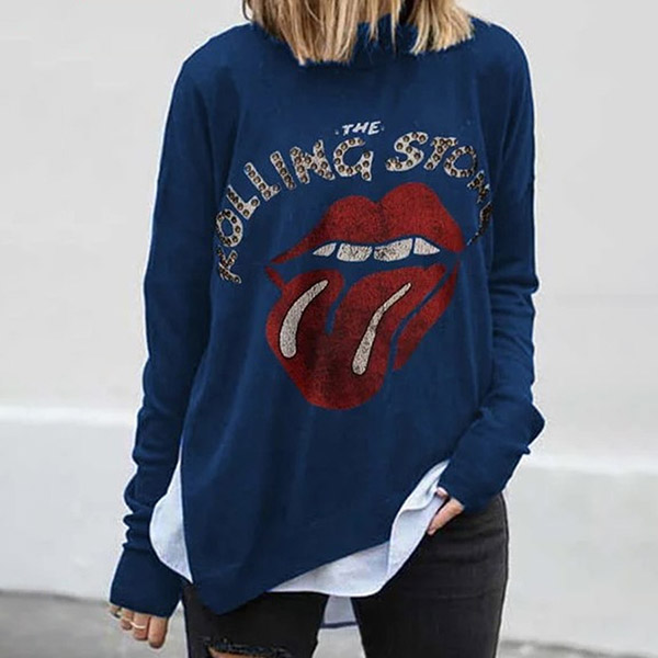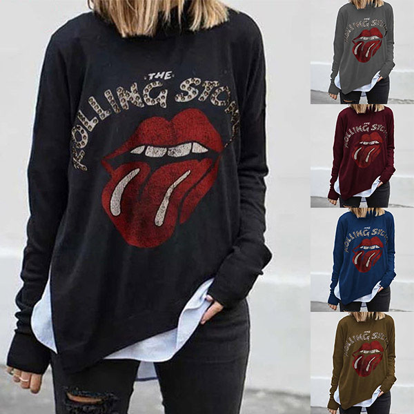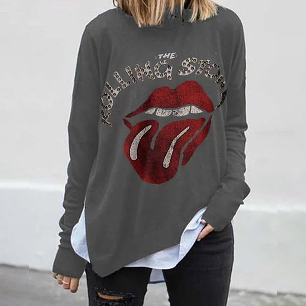 Enrich your casual wardrobe ensemble with this t-shirt! The rhinestone letters and lip printed details make this piece look so playful and chic. Its soft fabric and loose silhouette design can ensure you a comfortable day. Matching with your jeans to start your wonderful day!