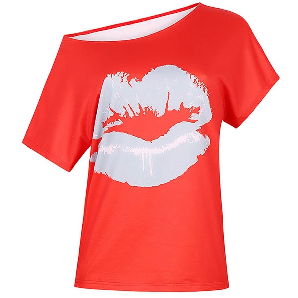 Chic Style Lip Printed Short Sleeve Loose T-shirt