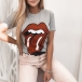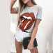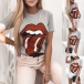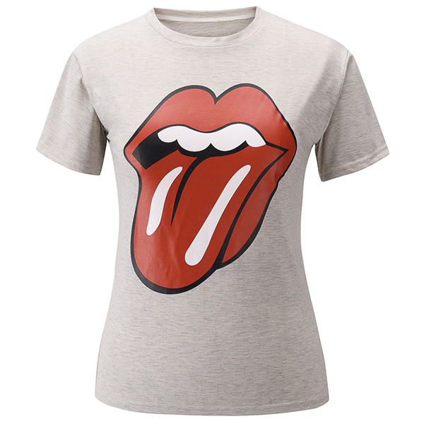 Chic Style Lip Printed Short Sleeve Round Neck T-shirt