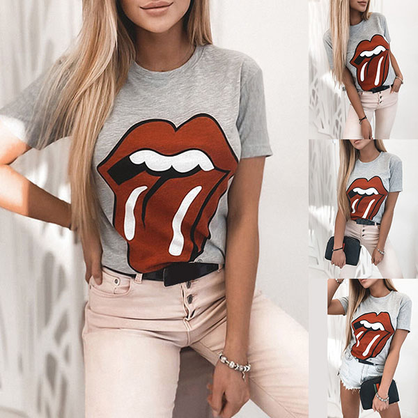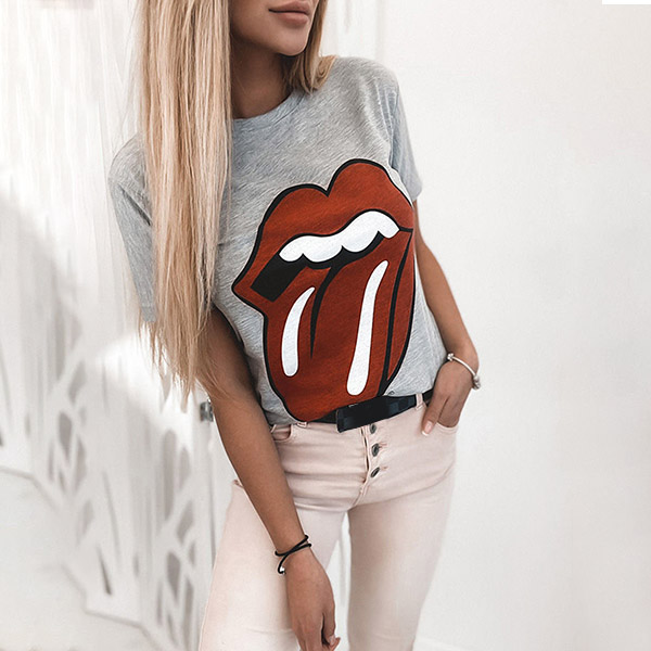 This t-shirt that combines of simple,cozy and stylish vibes is perfect fit for your casual days. The lip printed pattern design makes this piece look so playful and stylish. Crafted from soft and breathable fabric,with short sleeve and round neck design,this t-shirt allows to be matched with different style bottoms.