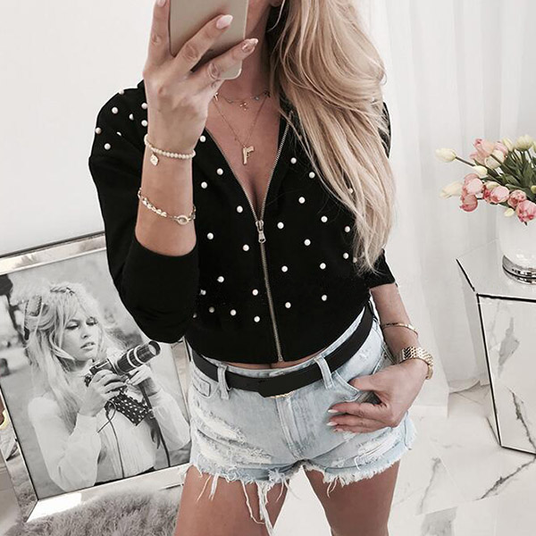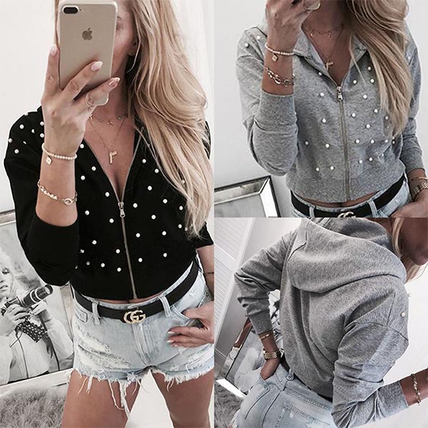 Portray your chic and unique fashion taste through this sweatshirt coat. It is crafted from soft and breathable fabric,with long sleeve and hooded silhouette,cozy yet stylish. Moreover,the beaded details will make this piece look more attractive. When you feel a little cold,this sweatshirt coat can be your wise choice.