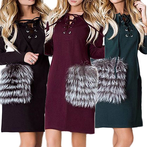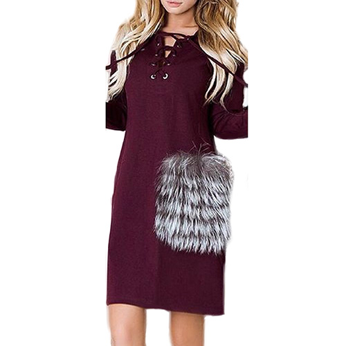 Your chic and stylish style will up to a new level if you opt for this t-shirt dress. Designed with long sleeve,lace-up
