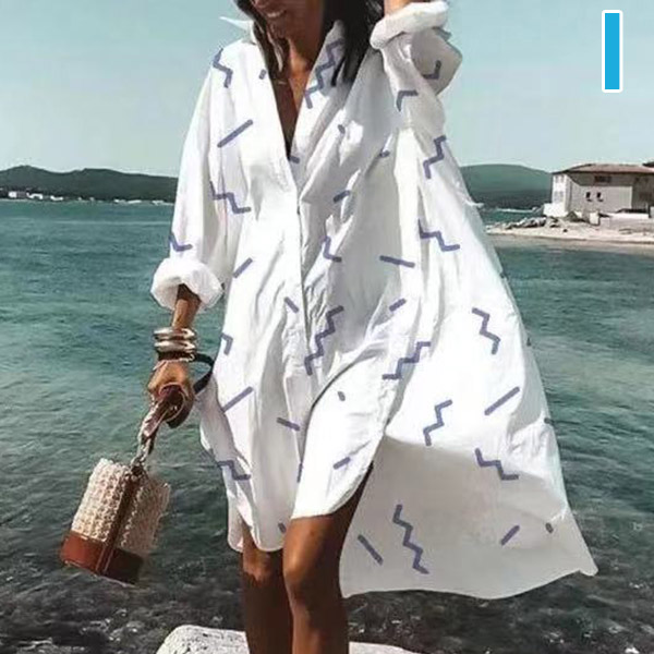 As for a chic and stylish street look,you can trust in this shirt dress. It is crafted from soft and breathable fabric,with long sleeve,POLO collar and a loose silhouette,this shirt dress not only can keep the comfy,but also can exude your personality. Moreover,the chic printed pattern and unique hem design will make this piece more attractive.