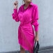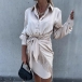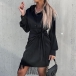 Chic Style Long Sleeve POLO COllar Knotted Tassel Dress