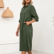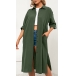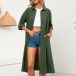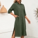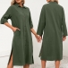 Chic Style Long Sleeve POLO Collar Slit Hem Solid Color Long-style Shirt