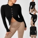 Chic Style Long Sleeve Round Neck Slit Hem Solid Color Top