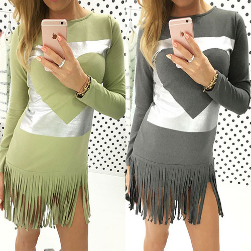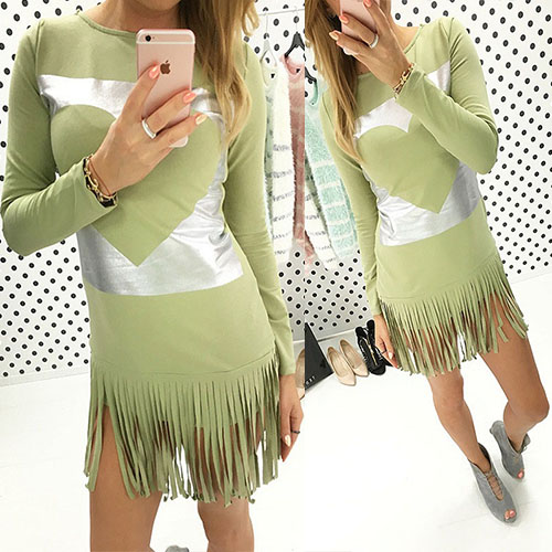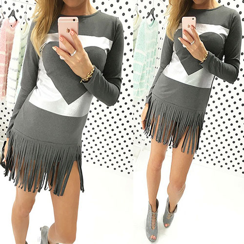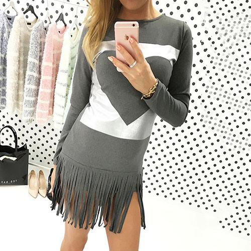 Easy to gain a chic and stylish look via this dress! Outfitted with long sleeve,round neckline and tassel hem,