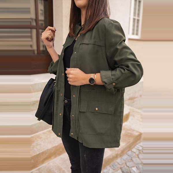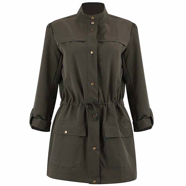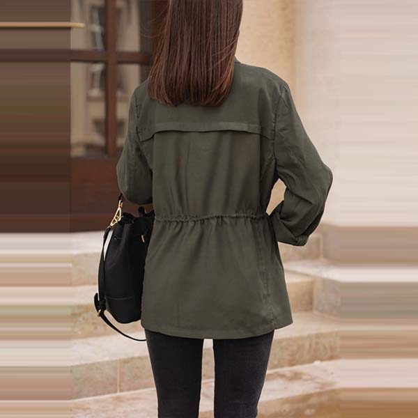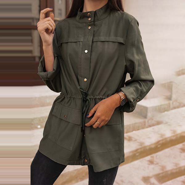 Chic Style Long Sleeve Stand Collar Drawstring Waist Windbreaker