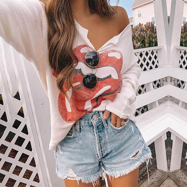 This t-shirt is crafted from soft and breathable fabric,with long sleeve and v-neck design,which can ensure you a long-lasting comfort. Moreover,the lip pattern design will lend you a dash of cute and playful vibes. It is perfect fit for your casual days and weekends.
