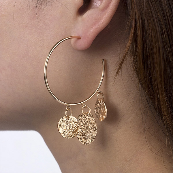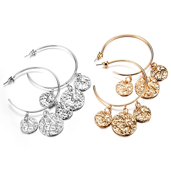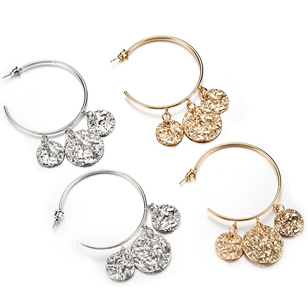 C-shaped design,decorated with metal sheet pendant,chic yet stylish.