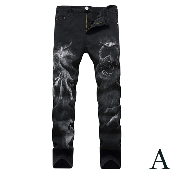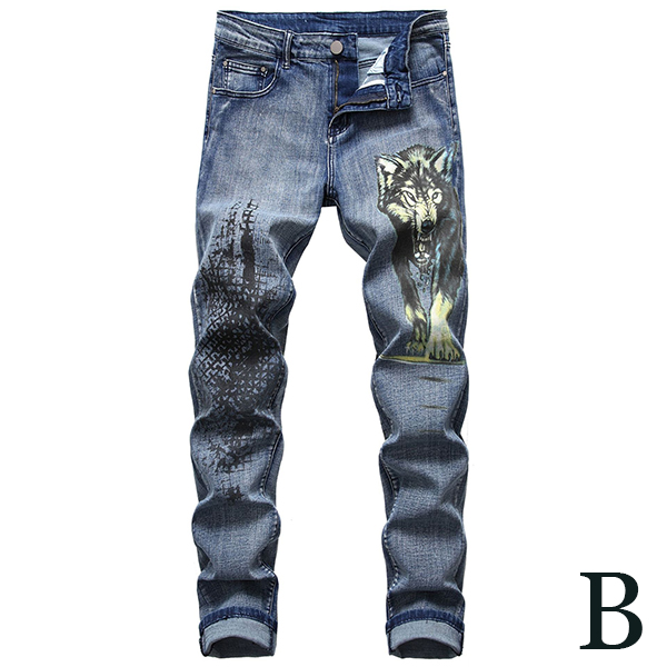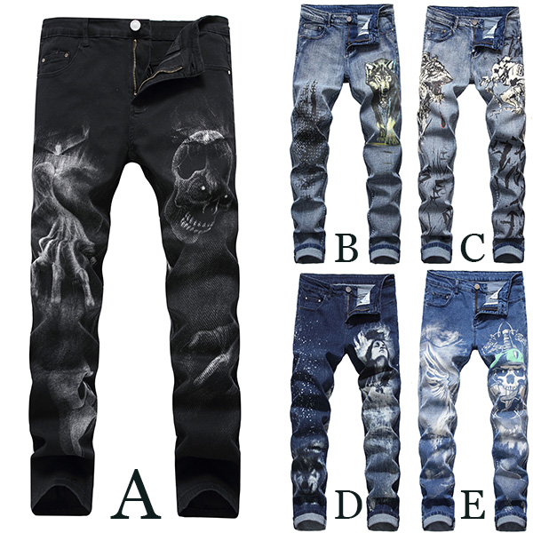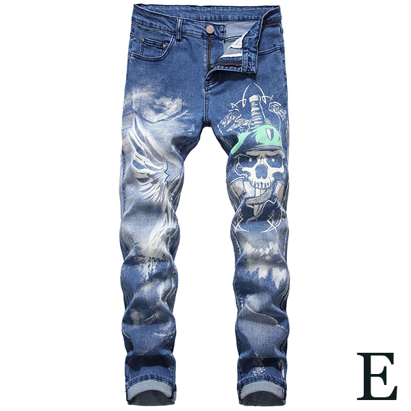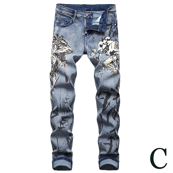 Chic Style Middle Waist Slim Fit Printed Man's Jeans