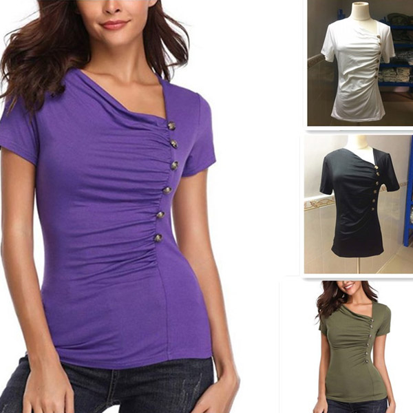 Wanna try a different style t-shirt? Then you can make your eyes focused on this piece. What makes this piece look so attractive? It owes to the oblique v-neck and front-button details. Meanwhile,its soft and breathable fabric can ensure you a comfortable day. You can trust in this piece to keep the comfy as well as the style.
